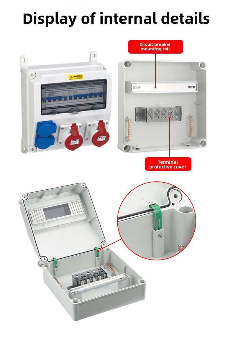 12-position plastic industrial portable socket box 280*280*155mm
