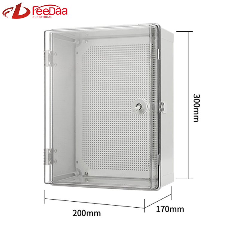 300*200*170 Transparent + middle door IP66 Distribution Terminal Box Customized ABS Plastic PC Wall Mounted Industrial Plug Socket Waterproof Outdoor Protection
