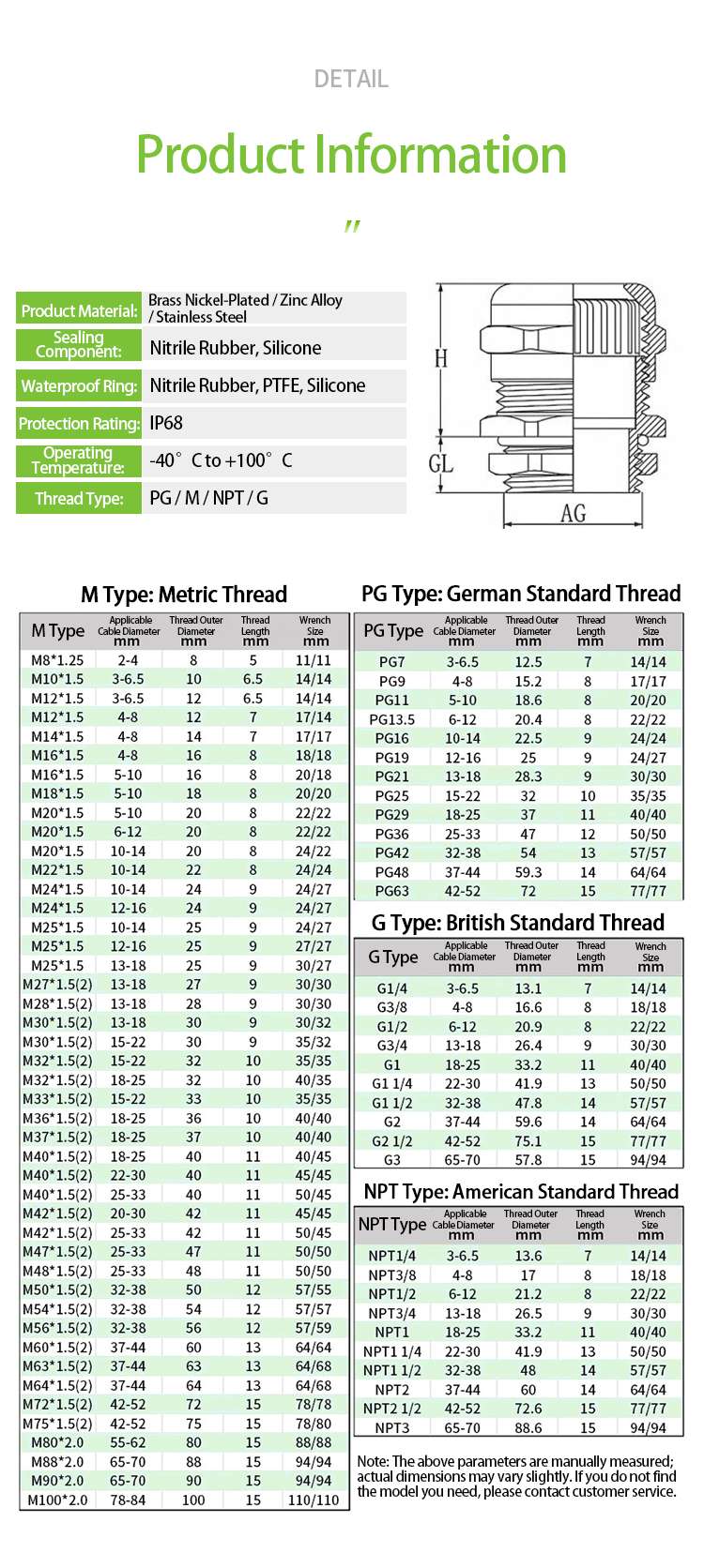 IP68 Brass Cable Gland M8 M10 M12 M14 M16 M18 M20 M25 M32 - Heavy Duty, Corrosion Resistant Durable Material