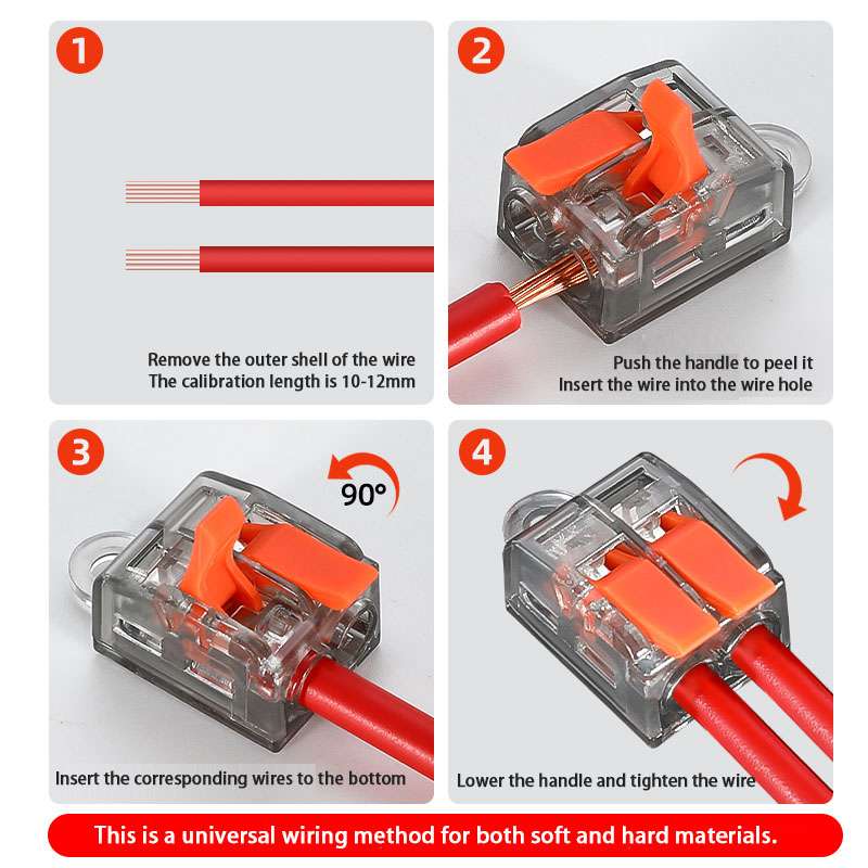 PCT-512/515 Series Compact Quick-Connect LED Strip Connector with Red Copper Contacts