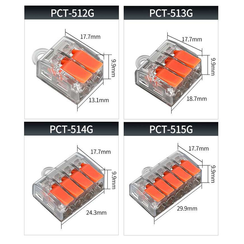 Fast Wire Cable Connectors| PCT-51, commonly used scenarios include lighting, electronics, elevators, cars, equipment, household appliances, electrical control systems, etc.