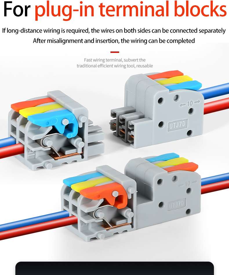 Fast Wire Cable Connectors| 1 in 1 out UTJ7D-1P,commonly used scenarios include lighting, electronics, elevators, cars, equipment, household appliances, electrical control systems, etc.