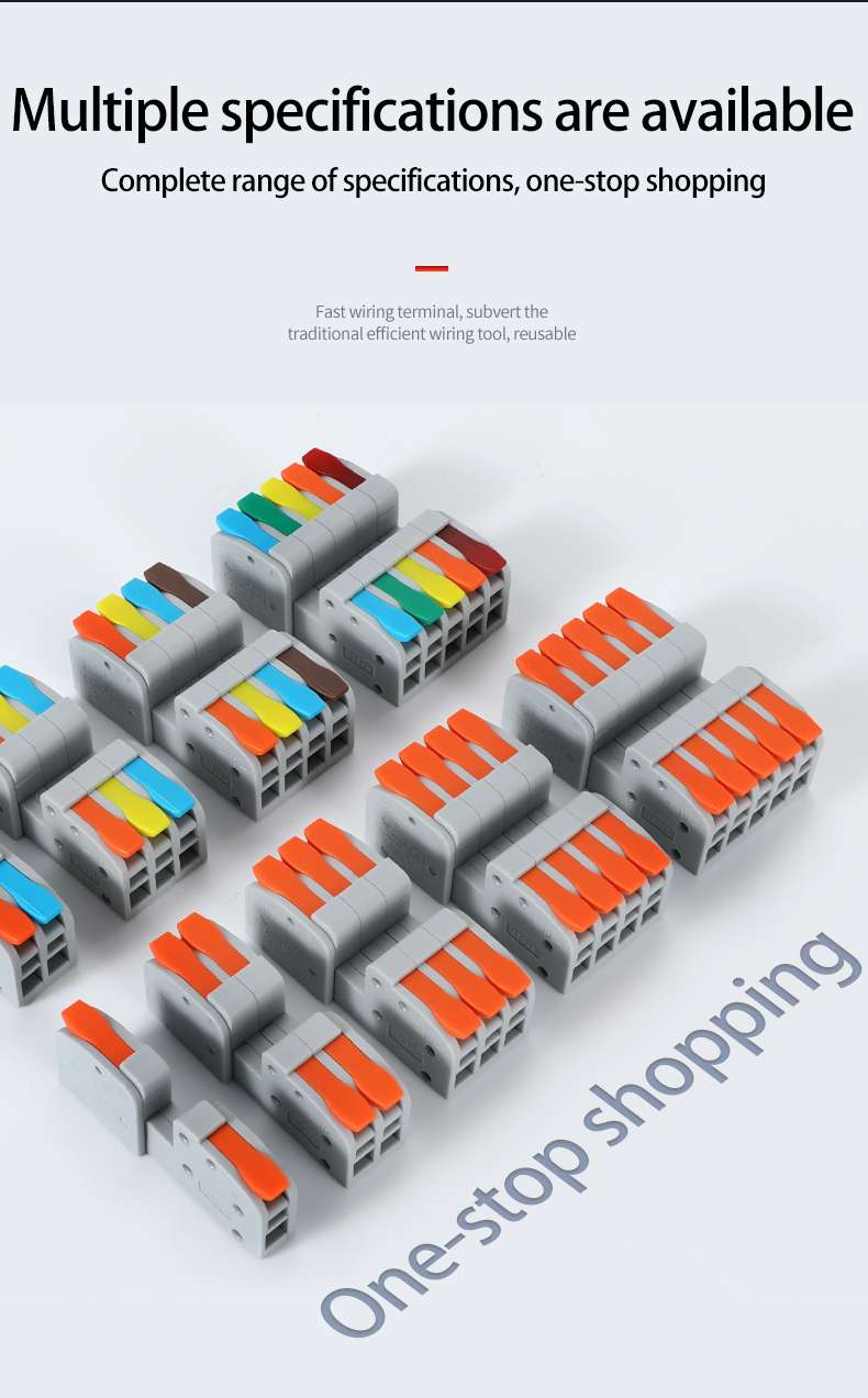 Fast Wire Cable Connectors| 5 in 5 out UTJ7D-5P,commonly used scenarios include lighting, electronics, elevators, cars, equipment, household appliances, electrical control systems, etc.
