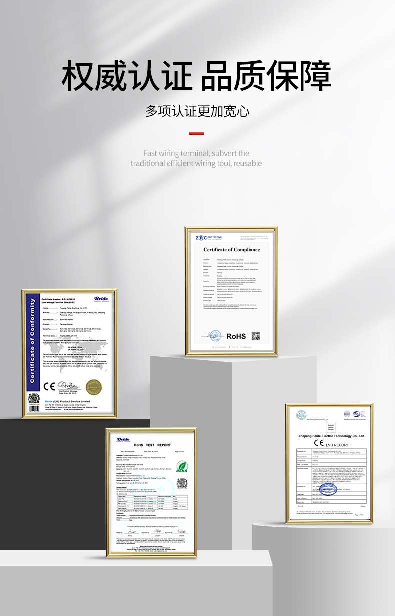 Efficient and convenient: Fast wiring, no tools required, no damage to the core wire. Simply peel off approximately 12mm of the wire casing, open the handle to 90 °, insert the wire into the connection port, and press the handle with your hand to complete the wiring. There is no need to worry about twisting between wires. The FeeDaa®connector will make work easier and wiring more aesthetically pleasing.