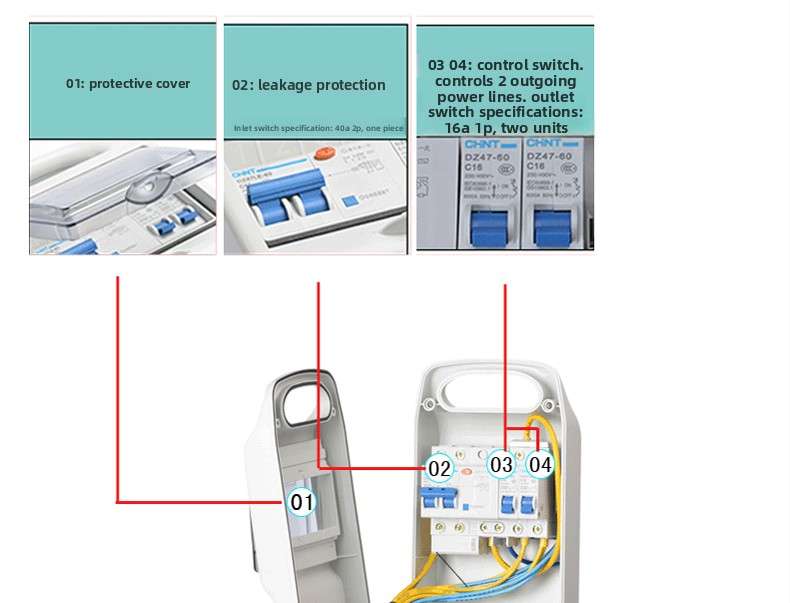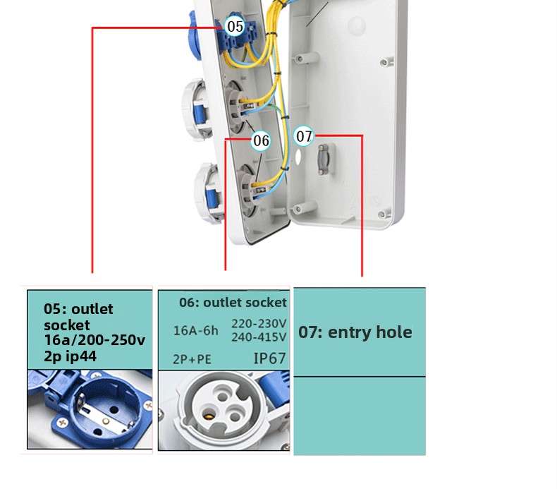 13-position plastic industrial portable socket box 430*330*175mm